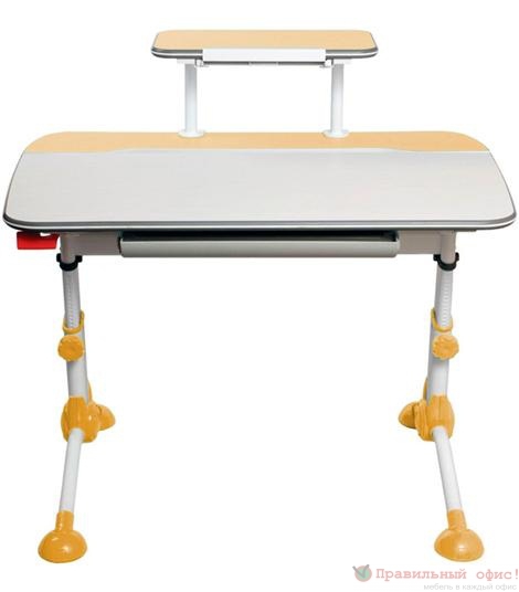Изменение высоты (от 56 до 77 см) и угла наклона (до 18 градусов) столешницы Ножки металлические Выдвижная полка для канцелярских товаров Полка с выдвижной подставкой для книг (50x25 см) Кабель-канал Размеры: (ШхГхВ): 105 х 71 х 80.9-101.9 см Цвет: Молочный / Оранжевый