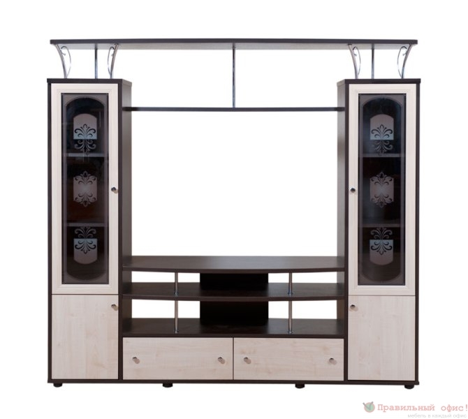 Горка «Симфония 5.10» создает в гостиной ощущение легкости и, в тоже время, является современным элементом мебели, позволяющим гармонизировать пространство, создать дополнительный уют и разместить необходимую видео-, аудиоаппаратуру, книги, посуду, сувениры, а также бельё и постельные принадлежности в больших ящиках.