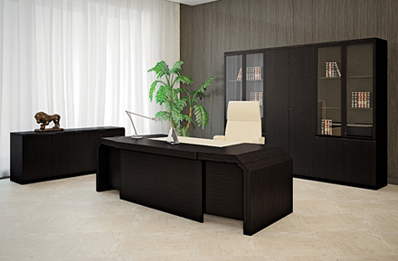 Кабинет «Quaranta Presedent», пользующийся самым высоким спросом среди руководителей высшего ранга – достойный выбор тех, кто ценит престиж, элегантность и комфорт. Строгая лаконичность линий идеально гармонирует с декором теплых тонов ценных пород дерева, используемых при отделке.