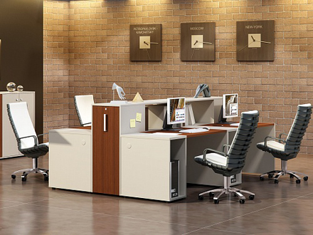 Коллекция «Open Space» идеально подойдет для любого помещения — для современного офисного пространства open space или для небольшого помещения, так как особенность коллекции — «конструкторский» подход к формированию рабочего пространства. В коллекции представлены эргономичные столы с несколькими видами столешниц, различные модульные элементы, вместительные шкафы, тумбочки и архивы, экраны и приставки, позволяющие формировать десятки комбинаций рабочих мест. Все элементы коллекции обеспечивают быстрый доступ к зонам хранения с любого рабочего места — тумбы, архивы и стеллажи располагаются между рабочими местами.